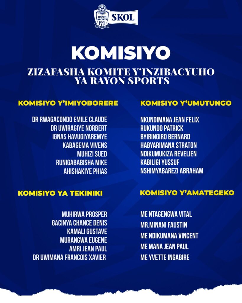 hamwe na Gacinya Chance Denis wahoze ari Perezida w’iyi kipe mu myaka yashize, akanavugwaho kuba umwe mu bateje imbere imiyoborere ndetse n’imishinga y’iterambere muri Rayon Sports, yongeye guhabwa icyizere mu nzego zifata ibyemezo, aho azafatanya n’abandi mu kugarura imikorere inoze.